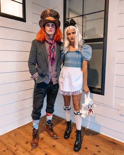 Tumble down the rabbit hole with this whimsical and slightly chaotic Alice in Wonderland couple costume.