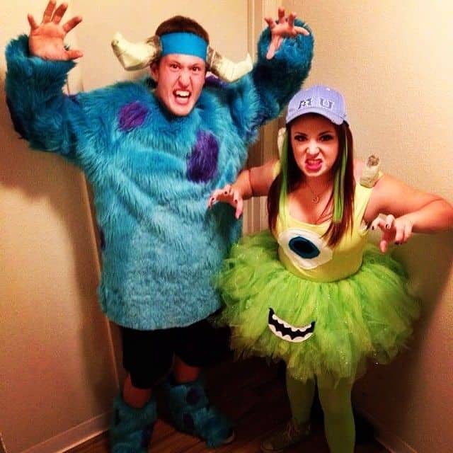 This Mike and Sulley costume is monstrously cute and hilarious in the best way. He’s rocking Sulley’s fuzzy blue fur and horns, while she totally owns the look with a green tutu, eyeball top, and hard to miss attitude as Mike Wazowski.