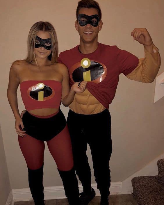 Suit up and save the day with this superpowered couples costume! Rocking the classic red and black uniforms from Pixar’s favorite hero family, this duo looks ready to leap into action or at least win best costume.