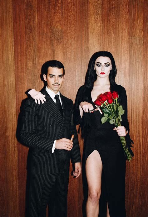 This look is all about glam meets gothic, with just the right amount of sass. Bonus: it’s ideal if you’re both into a little theatrical flair and unapologetically dark romance. Creepy, kooky, and couple goals.