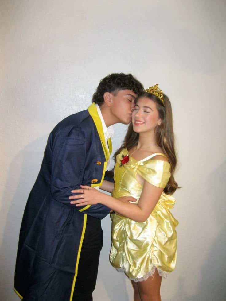 A tale as old as time and still just as adorable. This classic Disney couple costume never goes out of style. She’s glowing in Belle’s signature golden gown (tiara and rose included, of course), while he keeps it princely in his royal blue coat.