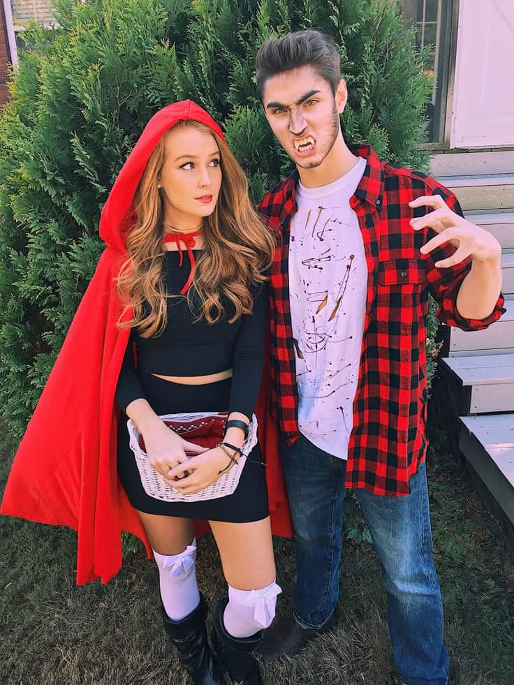 She’s rocking a bold red cape, crop top, and basket combo that gives serious storybook meets style energy, while he’s going all in as the “wolf in disguise” with flannel, fangs, and a fierce growl. It’s bold, cheeky, and definitely makes for a memorable entrance.