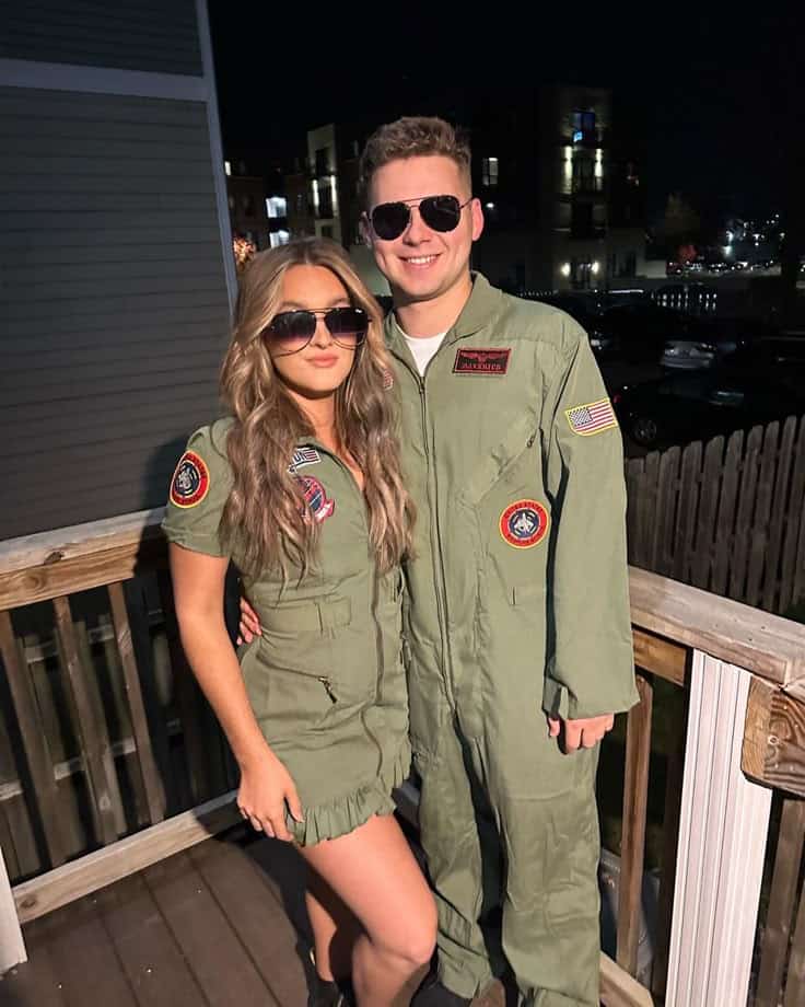 Both of you in matching flight suits with aviator shades? Instant icons. It’s simple, recognizable, and gives off just the right amount of main character energy, no jet required.