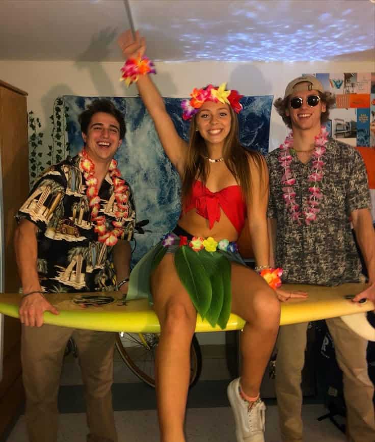 Ready to trade your witch hat for a flower crown? This Hawaiian surfer inspired look is a tropical dream for besties who’d rather bring the party to the beach, even if it’s just someone’s living room. It’s laid back, colorful, and honestly, the perfect excuse to wear a grass skirt and call it a look.