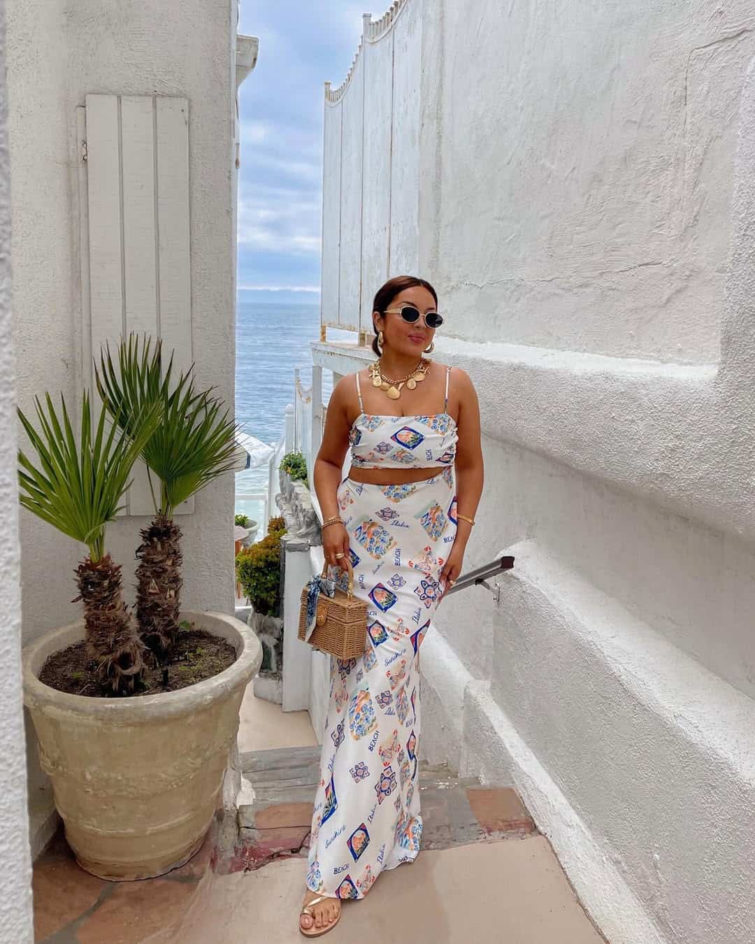 Paired with gold hoops and a grin that could rival the Riviera sun, this outfit is ready for anything from market strolls to late night dancing. Pro tip: twirl often.