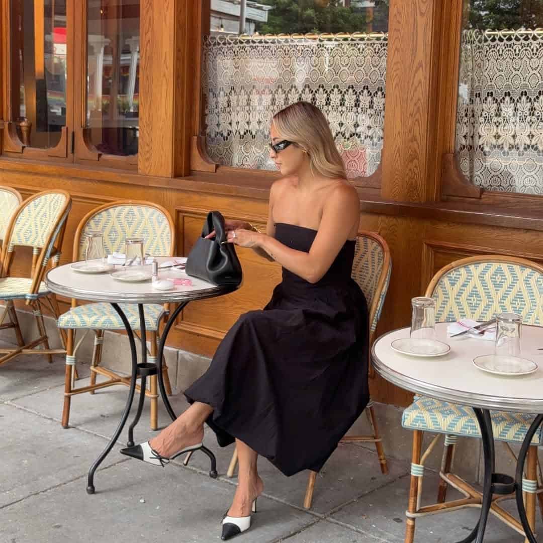 Proof that a black dress can still bring the drama without saying a word. This strapless midi is giving main character energy in the most casual “I just threw this on for my espresso” kind of way.