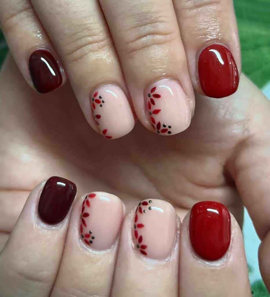 21 | Cherry Colored Nails + Cherry Colored Floral Tips
