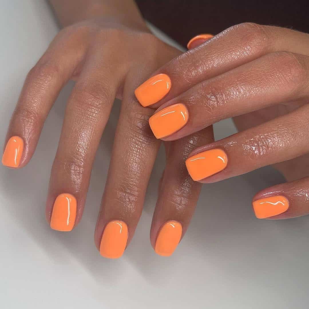 Simple, glossy, and seriously juicy, these bright orange nails are giving full on creamsicle realness. It’s one of those shades that instantly brightens your whole look and makes you want an iced drink in your hand ASAP.