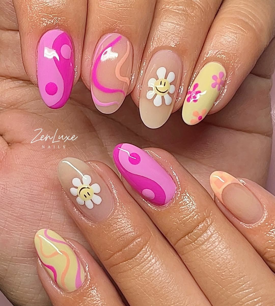 it’s giving major flower child meets Pinterest core. Perfect if you want your nails to say “I’m fun, flirty, and probably listening to ABBA right now.”