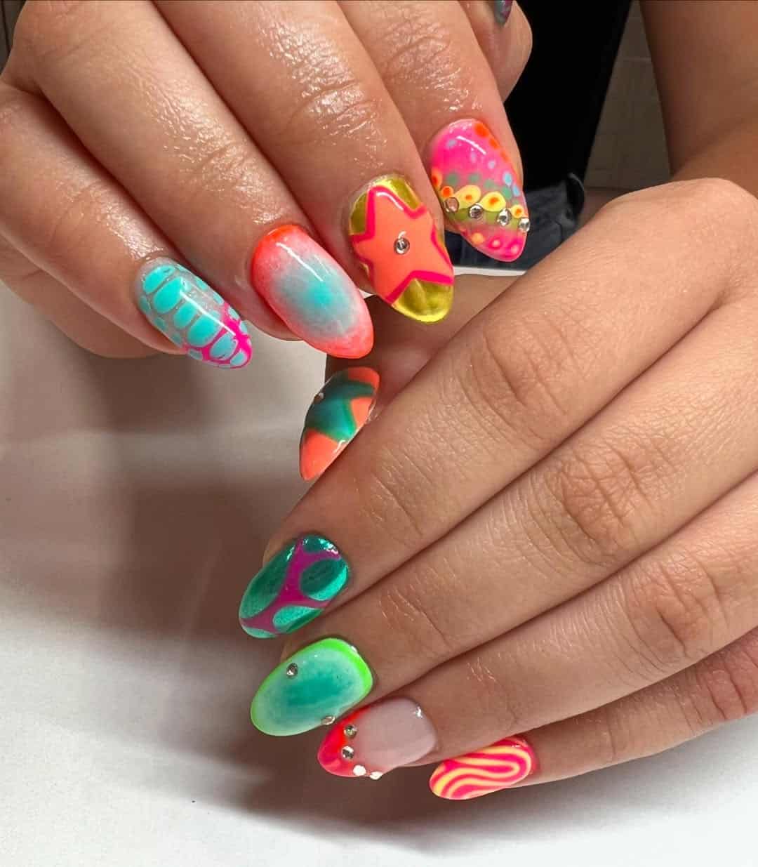 It’s giving ‘I couldn’t choose so I picked them all,’ and honestly? It works. This is the mani for indecisive girlies who want it all and have the personality to pull it off.