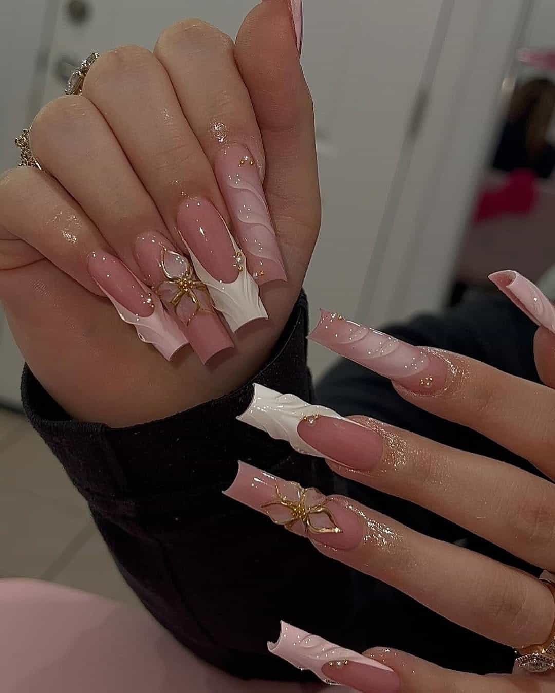 With a couple of pink patterned French tips thrown in, it’s the perfect mix of fun, charm, and a little Y2K flair.
