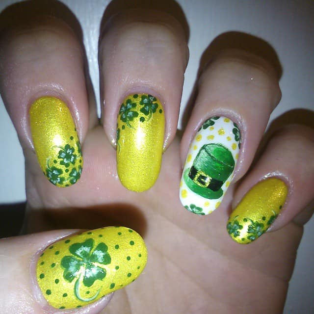 5 | Green & Yellow Patterned St Patrick’s Day Nails