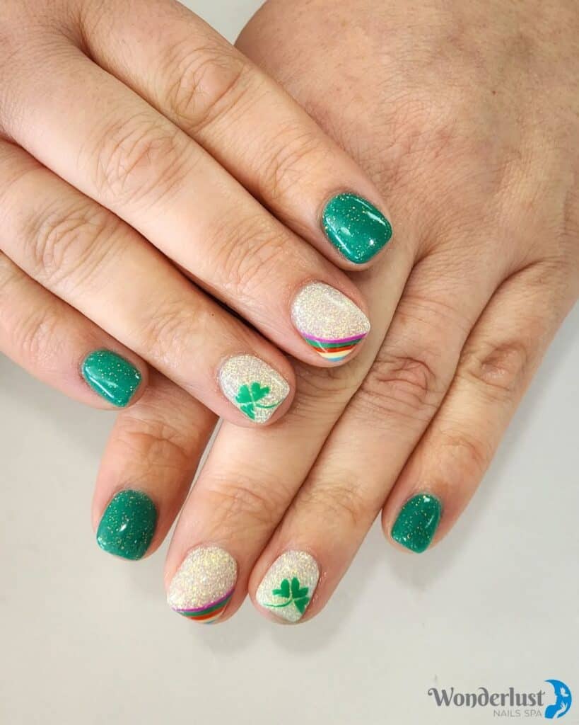 13 | Short Glitter St Patrick’s Day Nails